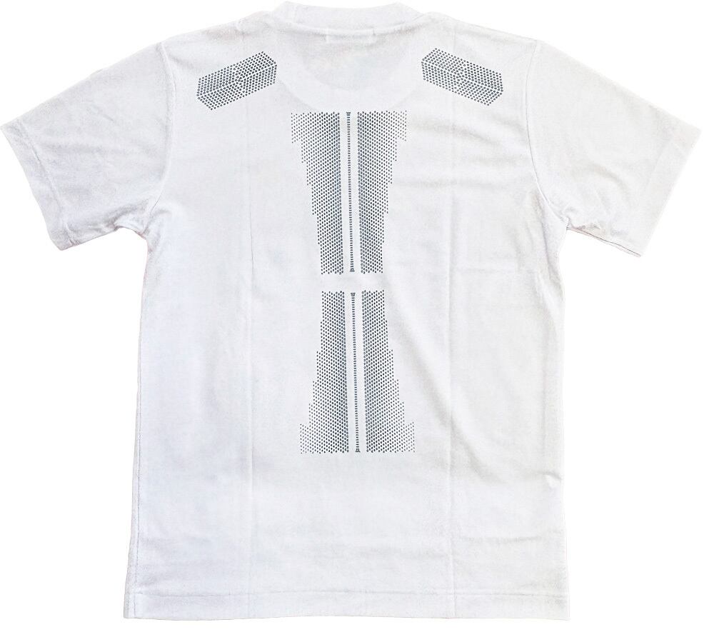背中と肩にプリントした「スパオール」が微弱な電磁波が神経をやさしく刺激し、乱れを整えることでパフォーマンスアップやリラクゼーションなど様々な効果を導きます。