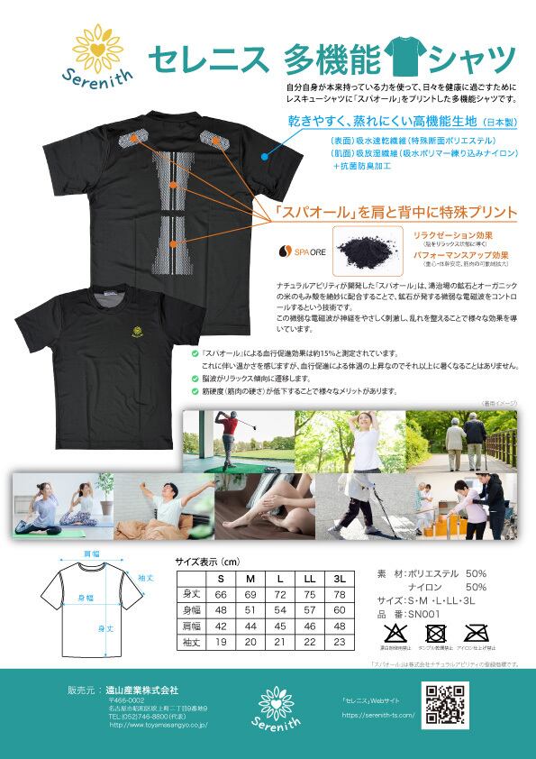 国内のレスキュー隊が着用する日本製の特別な高機能Tシャツに「スパオール」を肩と背中にプリント加工した特別なパフォーマンスアップTシャツです。。